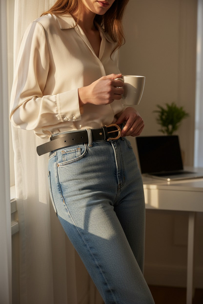 Yumuşak dokusuyla dikkat çeken bu kemer, zarif kavis formundaki tokasıyla sade şıklığı vurgular. PU süet malzemenin mat ve pürüzsüz yüzeyi, kemere sofistike bir görünüm kazandırır. Geniş yapısı sayesinde elbiselerden oversize gömleklere kadar pek çok kombinle uyum sağlar. Altın renkli metal tokasıyla klasik stile modern bir dokunuş getirir.