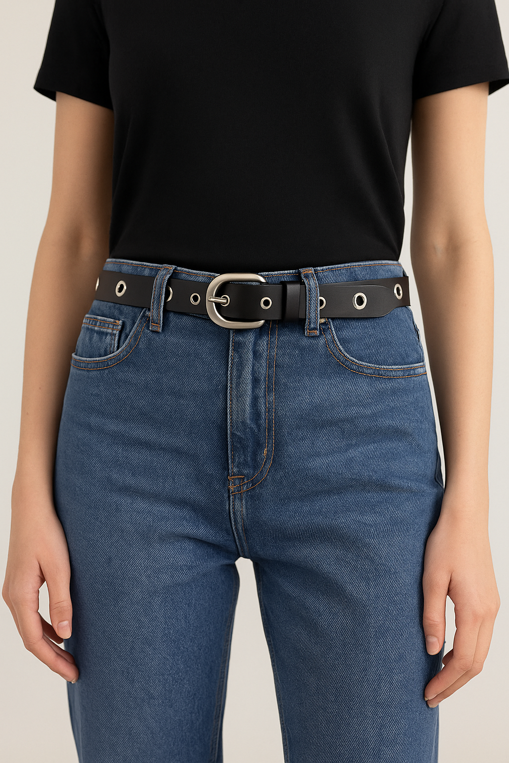 Kadın - Metal Aksesuarlı ve Gümüş Tokalı Kemer