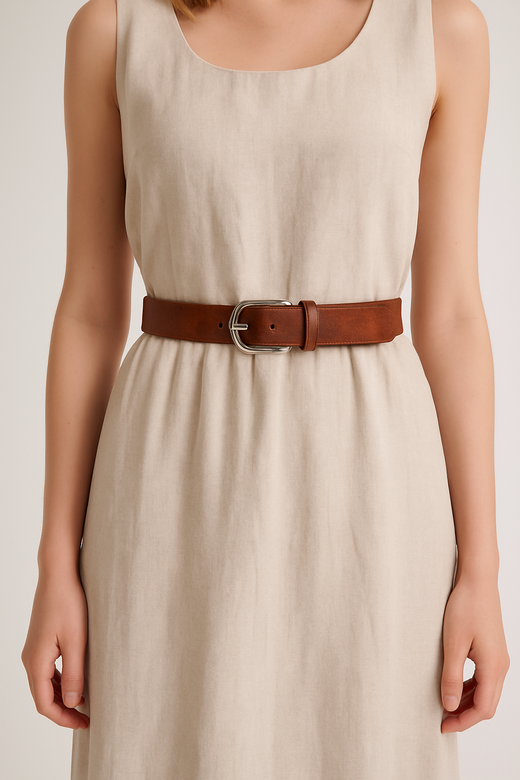 Kadın Vintage Görünümlü Deri Kemer – Metal Tokalı